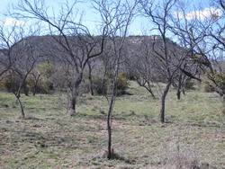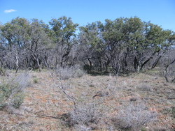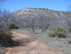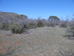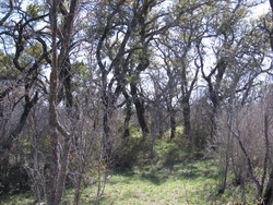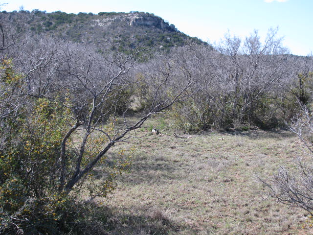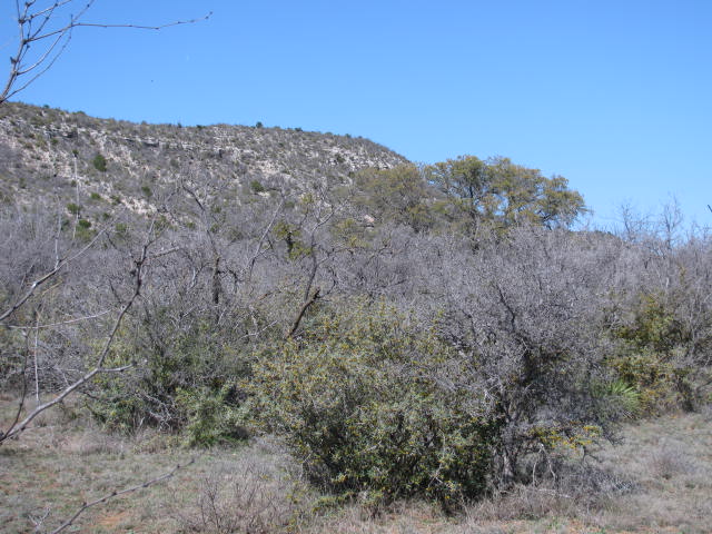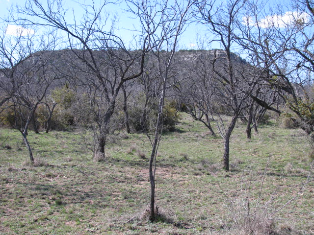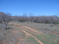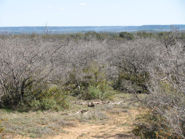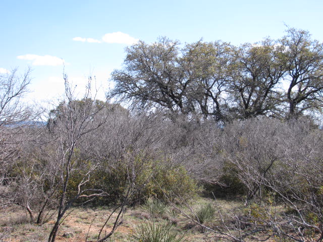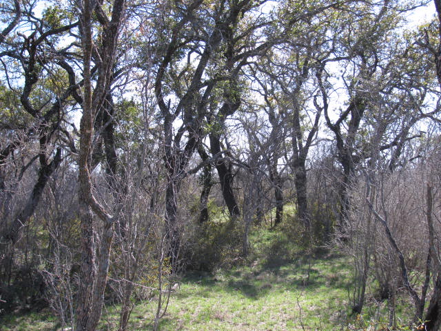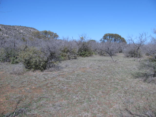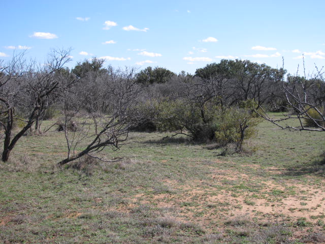 MAINLY SCATTERED MESQUITE, PERSIMMON AND AGARITA, BUT A FEW NICE OAK TREES WELL LOCATED FOR POTENTIAL BUILDING SITES. ONE SIDE CURRENTLY UNFENCED.